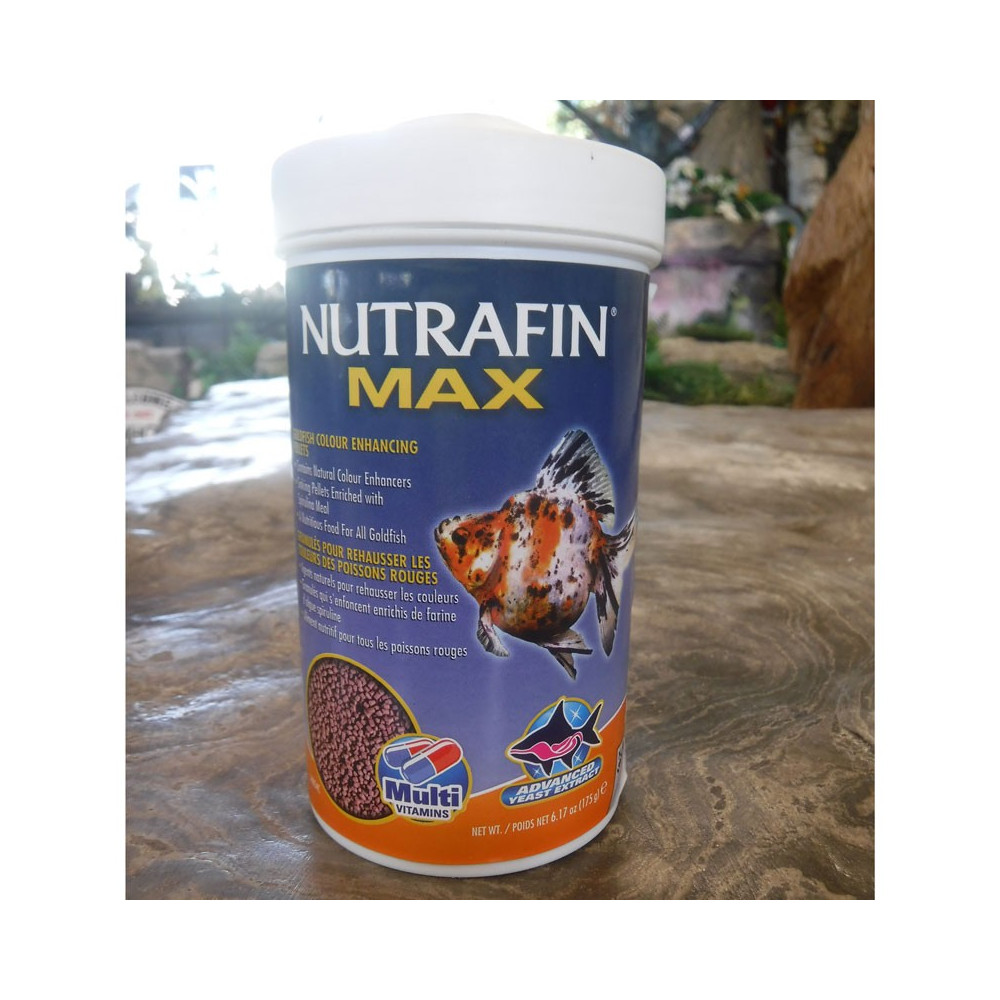 Nutrafin Max Goldfish Colour Enhancing & Wheat Germ Meal Pellet Mix is a nutritious, highly palatable fish food that provides the ultimate in goldfish nutrition. A mixture of naturally coloured sinking and floating pellets, the fish food is enriched with wheat germ meal and includes spirulina for an excellent source of unique proteins. It also contains natural colour enhancers, a natural binder that supports digestive conditions, multi-vitamins and Advanced Yeast Extract, which helps improve digestion and allows optimal nutrient absorption. The fish food container has a specially-designed lid that serves as a convenient dispenser.