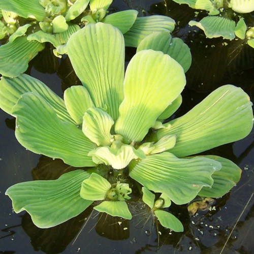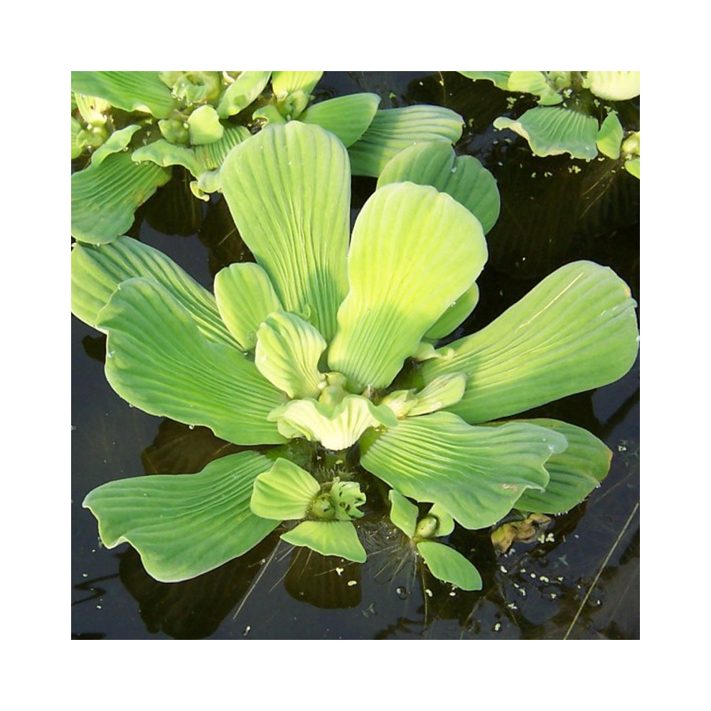 Rosette of velvety blue-green leaves. Trailing roots remove excess nutrients and help purify water. Lettuce will create shade and provide a spawning medium for fish. Does well in partial shade.